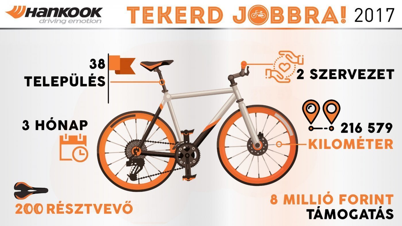 A tavalyi sikeren felbuzdulva a Hankook Tire Magyarország Kft. idén nyáron is elindította egyedi kezdeményezését, amely újabb széles társadalmi összefogást eredményezett. A „Tekerd Jobbra!” programban résztvevők ebben az évben a Mosoly Alapítvány, illetve a Gyermekétkeztetési Alapítvány munkáját támogathatták. Az akcióhoz bárki csatlakozhatott a vállalat dolgozói mellett, amellyel a Hankook a társadalmi felelősségvállalás és az egészséges életmód fontosságára szerette volna felhívni a figyelmet.