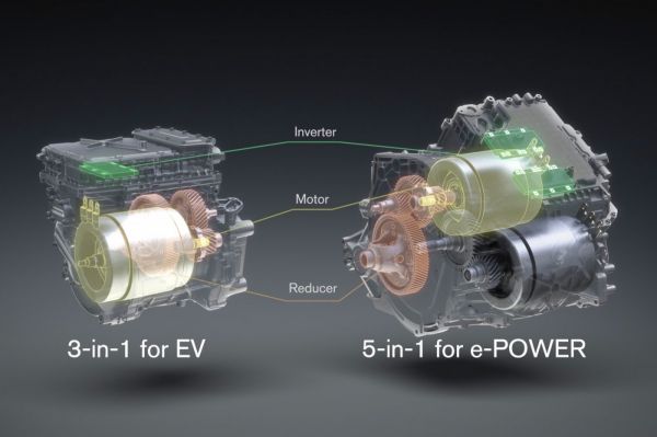 Úgy számolnak a japánok, hogy az egységesítésből következő nagyobb darabszámok és a fejlesztési költségek csökkentése miatt a 201-es szinthez képest 30%-ot spórolnak meg 2026-ra az X-az-1-ben hajtásoknál. Utóbbival arra utalnak, hogy az akkumulátoros-elektromos autóknál használt 3-az-1-ben megoldás (hajtómotor, inverter, fogaskerék-áttétel) és az e-Power hatótávnövelős megoldásnál alkalmazott 5-az-1-ben megoldás (hajtómotor, inverter, fogaskerék-áttétel, generátor és második fogaskerék-áttétel) esetén a lehető legtöbb alkatrész egységes és moduláris lesz. A fejlesztés ezen kívül még a tömeg és a ritkaföldfémek-használatának minimalizálására is törekszik.