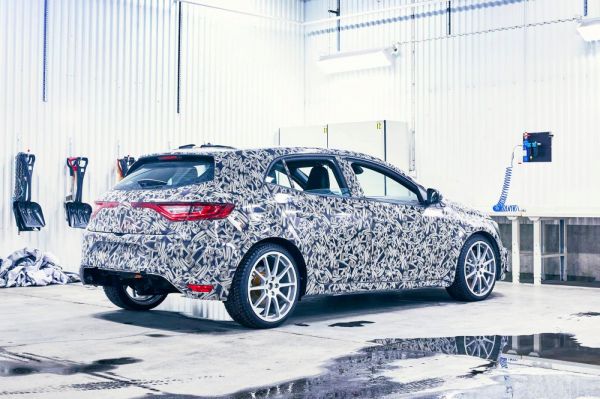 A látványos részletek, úgymint a szellőzőnyílások az első kerekek mögött, vagy a hátul középen kivezetett kipufogó nem láthatóak, de például a gyári megfogalmazás szerint a kockás zászlót idéző LED-es ködlámpákat jól ki lehet venni az új fotókon. A technikáról továbbra sincs semmi hivatalos információ, de a hírek szerint a kézi váltós Mégane RS-ben az 1,8-as turbómotor 300 LE/420 Nm teljesítménnyel kerül, míg a dupla kuplungos váltónál 300 LE/400 LE lesz a maximum.