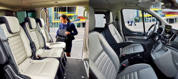 Kategóriájában egyedüliként a Tourneo Custom utasterének hátsó részében hat darab, külön-külön mozgatható ülést találunk, amelyeket akár egymással szembe is lehet forgatni. Az új anyagok mellett a zajszintet is lecsökkentették, a SYNC 3-as fejegységet pedig felkészítették az utasok kütyüivel való megbarátkozásra is. Hat darab USB csatlakozó szolgál energiaellátás céljára, ezen felül nagyobb teljesítményű lett a szellőzőberendezés, tehát gyorsabban tudja temperálni az utasteret az autó. Új felszereltségként érkezik a kínálatot megkoronázó Titanium X, xenon fényszóróval, bőr kárpittal, navigációval és rengeteg egyéb extrával.