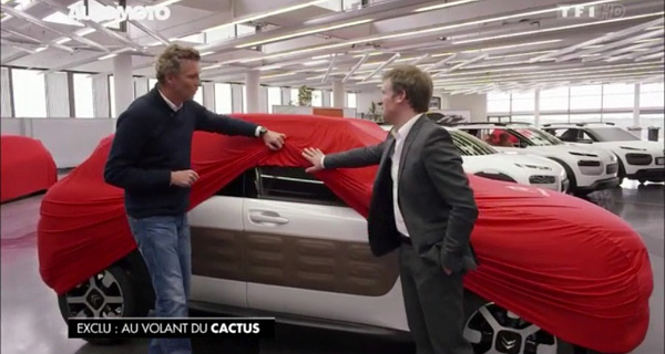 A francia TF1 tévéadó Auto-Moto műsorának legutóbbi, október 6-i adásában a Citroën márka tanulmányaival foglalkozott, és e közben rögzítettek pár jelenetet a cég fejlesztőközpontjában, amely során a Frankfurtban tanulmányként bemutatott Cactus szériaváltozatát is megnézték.