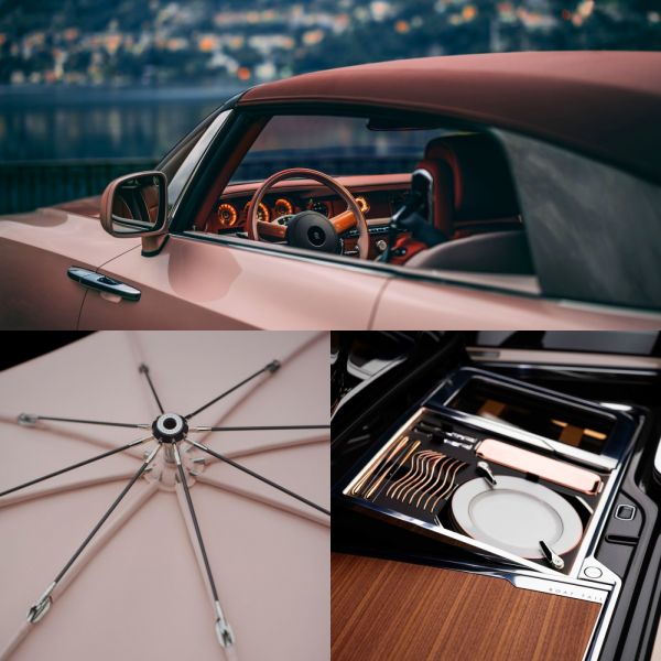 A hátsó mogyorófa fedélzetet rózsaarany fémmel díszítik, a bal oldali fedél alatt találjuk az italhűtőket és a megfelelő poharakat, a jobb oldalon a vacsora-készlet rejtőzik. A Christofle of Paris műhely készítette a rózsaarany porcelán tányérokat és étkészletet, az ételt fűtődoboz tartja melegen, az összecsukható karbon székeket az olasz Promemoria készítette, a napernyő a Rolls-Royce saját konstrukciója. A műszerfal közepén lévő óra számlapja egy darab igazgyöngyből készült, ez az ügyfél a saját, több évtized alatt felépített gyűjteményéből származik. Műszakilag az előző generációs Phantomra épül a Rolls-Royce Boat Tail Pearl, tehát 6,75 literes lökettérfogatú, szívó V12-es hajtja a hátsó kereket.