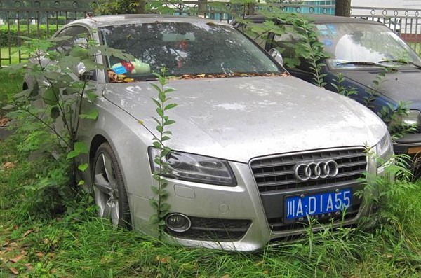 A legszebb, hogy úgy tűnik Chengdu városának rendőrségét se zavarja az autó, hiszen már hónapok, talán évek óta áll mozdulatlanul, nemcsak a tulajdonos, de a hatóságok se tesznek ellene semmit sem. Érdekes látni, hogy amíg az Audi A5-ös orrát az esők tisztán tartják, a hátulja vastagon koszos.