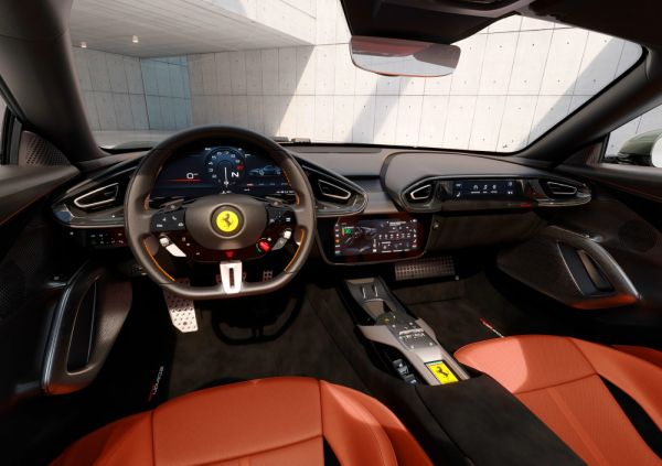 Az utastérben az anyósülés elé is kerül egy mini-műszerfal digitális kijelzővel (8,8 col képátló), mélyre helyezték az érintőképernyős fejegységet (10,25 col képátló), a vezetőt egy 15,6 colos digitális műszeregység látja el információkkal. A fizikai kapcsolók a kormánykerékre szorítkoznak, az Alcantara 65%-ban megújuló forrásból származik. A kupénál a korábbinál nagyobb méretű üvegtető teszi tágasabbá a fejteret. Összkerék-kormányzás, by-wire fékrendszer, és a keresztben autózás támogató menetstabilizáló – ami 10%-kal gyorsabban dolgozik a korábbinál – segítségére számíthat a Ferrari 12Cilindri sofőrje.