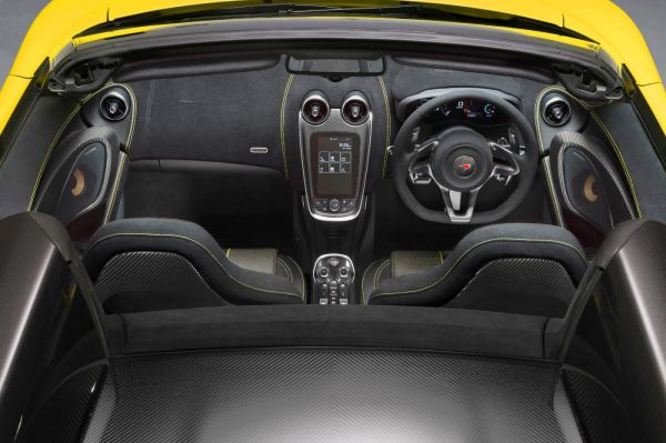 Mindössze 15 másodpercig tart a nyitása vagy zárása, menet közben legfeljebb 40 km/h-s tempóig is lehet ezt végezni, a hátsó szélvédő is leengedhető, ami egyben a szélfogó funkcióját is ellátja. Új elem, hogy a kipufogót egy rezonátorral összekötik a tetődobozzal, így sokkal intenzívebben hallják a motort az 570S Spider utasai, mint a kupénál.