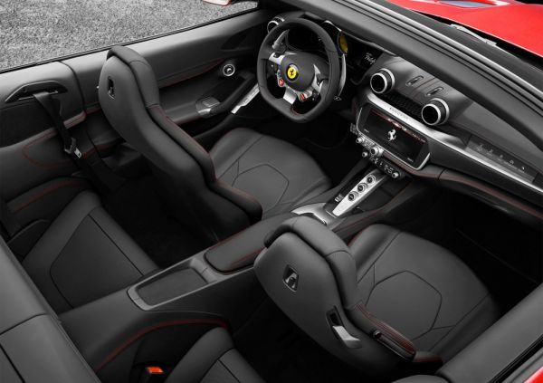 A 812 Superfast típusra hasonlít az orr megjelenése, határozottabb a vonalvezetés. Az új vonalvezetésnek és a tetőnyitáskor felnyíló szélfogónak köszönhetően harmadával csökken a huzat az utastérben, ahol még a 10,2 colos központi érintőképernyő említhető újdonságként, no meg az, hogy az utas elé is kerül egy kijelző, amelyről ő is tájékozódhat a menetadatokról.