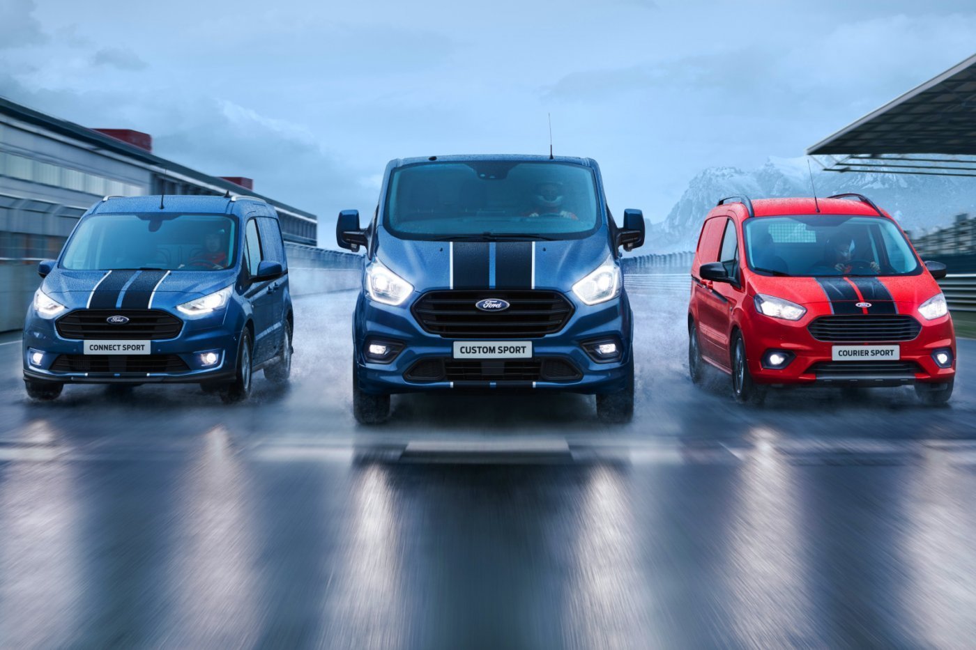 A Transit Connect Sport-ot a 120 lóerős 1,5-ös EcoBlue dízel hajtja, ennél 16 colosak a felnik, és bőr/szövet kárpitozású üléseket kap a mattfekete versenycsíkok mellett. A legkisebb Transit Courier Sport esetén a 100 lóerős 1,5-ös dízel alternatívájaként az 1,0 literes, szintén 100 lóerős benzinmotort is lehet választani. Ennél vörös díszvarrással dobják fel a félbőrös üléseket.