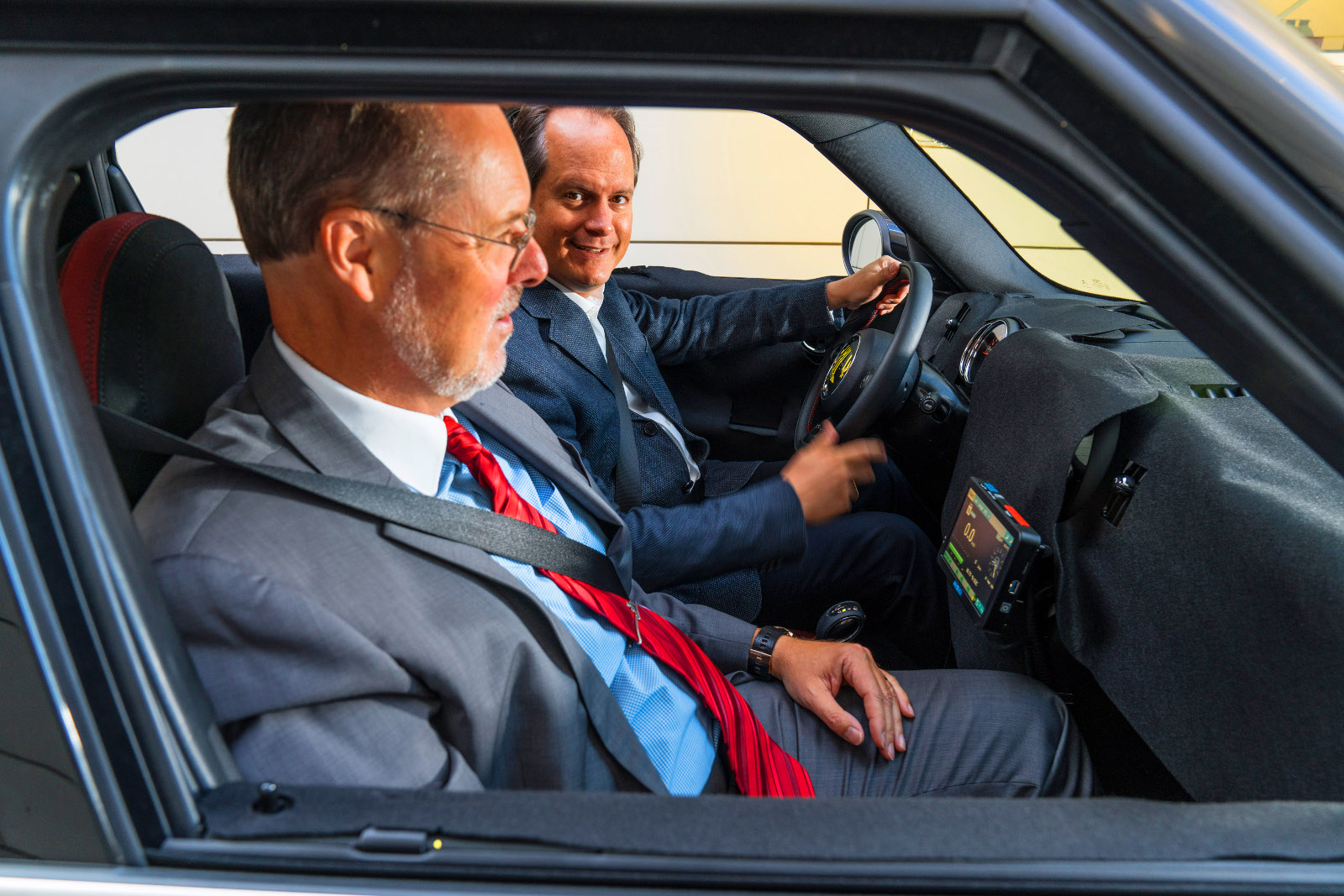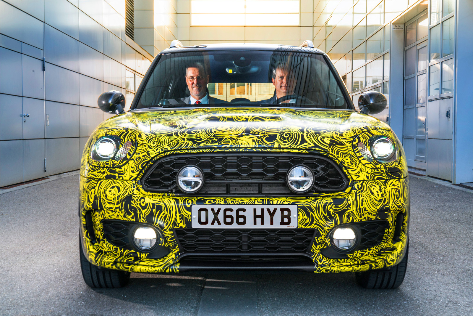 Sebastian Mackensen a Mini márka igazgatója és Peter Wolf, a márka sorozatgyártásért felelős vezetője látható a fényképeken az erősen álcázott autóval, és meg se lepődünk azon, hogy nagyon örülnek az újdonságnak. Gokartszerű vezethetőséget ígérnek az új modellnek, amely várhatóan ugyanazt a benzin-elektromos hibrid hajtást kapja, ami például a BMW 225xe-ben is szolgál, azaz 224 LE/385 Nm rendszerteljesítmény az eredménye az 1,5-ös benzines és a 88 lóerős villanymotor együttműködésének, no meg virtuális összkerékhajtás. A karosszérián annyi lesz a változás, hogy a bal első sárvédőre kerül az elektromos csatlakozás, az utastérben a kormányoszlopra szerelt fordulatszámmérőt cserélik le egy „erőmérőre”. Villanymotorral akár 125 km/h-s tempót is képes lesz elérni a hibrid Mini Countryman.