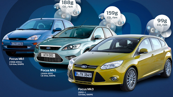 Amíg az 1,6-os szívómotor szabványos átlaga 5,9 l/100 km, addig a motorleállítóval is rendelkező 1.0 EcoBoost 4,8 l/100 km-t tud laboratóriumi körülmények között. Ez utóbbit viszi lejjebb az ECOnetic csomag, amely alacsony gördülési ellenállású abroncsokat, aktív hűtőrácsot, burkolt padlót, nyújtott áttételezésű váltót, fékenergia-visszatáplálást és különleges EcoMode üzemmódot is tartalmaz. Az eredmény 4,3 l/100 km-es szabványos átlagfogyasztás, ami a legtakarékosabb benzines kompakt autóvá teszi a Ford Focust.