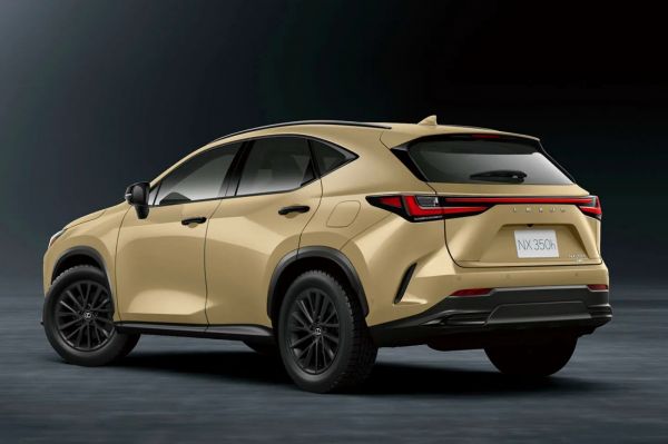 A karosszéria külsejének krómtalanítása kapcsán a Lexus rögtön megpróbálta kalandosabbá tenni az NX modelljét. Az Overtrail változathoz rendelhető csak a Moon Desert nevű karosszériaszín (ezenkívül még 6 másik választható), ami jól kiemeli a fényes fekete karosszériadíszeket, a 18 colos felniket mattfeketére fényezik és terepmintás abroncsokat szerelnek rájuk.