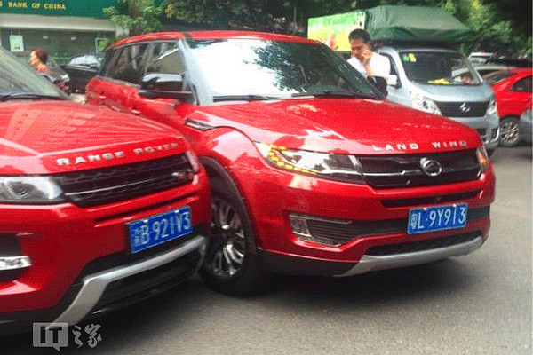 Noha külön anyától származnak, a Range Rover Evoque és a kínai Landwind X7-es szabadidő-autó megszólalásig hasonlítanak egymásra, igaz, a sajtófotókat egymáshoz nézve felfedezhetőek különbségek. A gyakorlatban azonban vajmi keveset számítanak ezek – nem csoda, hogy a brit cég védjegybitorlás miatt beperelte ellenfelét, a kínai bíróság pedig azt a salamoni döntést hozta, hogy mindkét fél védjegy-bejegyzését megsemmisítette, szóval nincs miről ítélnie.