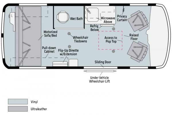 A belső térben széles a közlekedőút, a hátsó ágy gombnyomásra alakul át kanapénak, a szekrények alacsonyan vannak, a felső tárolók egy részét le lehet húzni, a fürdőhelyiség tágas és függöny határolja, a padlónak nem okoz gondot az esetleges fokozott vízterhelés. A Winnebago nem közölte, hogy mennyibe kerül az akadálymentesített Roam lakóautó, a hagyományos változat felszereltségtől függően 100 000 dollár körül indul.