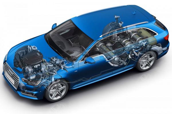 200 bar-os nyomáson 19 kg földgázt tárolnak a tartályok, alaphelyzetben ezt használja az elektronika, ami csak akkor vált át benzinre, ha 10 bar alá csökken a nyomás. A motortérben a 2,0 literes TFSI 170 LE/270 Nm teljesítményű változata dolgozik, a teljes hatótávolság 950 km, ebből 500-at földgázzal tud megtenni az autó. Németországban a benzin-CNG üzemű Audi kombiért legalább 40 300, az ötajtós kupéért 40 800 eurót kérnek.