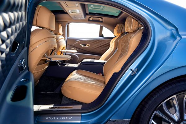 A választás megkönnyítése érdekében a Mulliner szakemberei nyolc egyedi, háromszínű belső hangulatot készítettek, de természetesen egyéb elképzeléseket is megvalósítanak. Szériában jár a Mulliner Driving Specification csomag, amivel együtt a gyémántmintás díszvarrást is adják, természetesen kézzel készítik az összes varratot; minden üléskárpit 712 darab öltésből áll össze, a bonyolult minta kialakítása és annak begyakorlása 18 hónapot vett igénybe. A digitális menük egyedi megjelenést kapnak, az első ülések támlájára gombnyomásra előbújó, önszintező asztalokat szerelnek. A slusszkulcsokat az autó belső hangulatának megfelelő bőrből készített dobozban nyújtják át az ügyfélnek.