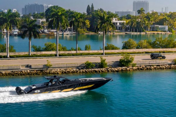 Persze a teljesítményről se feledkeztek meg, szám szerint hat darab Mercury Racing 450R külső motort szerelnek a hátsóra, a 2700 lóerős rendszerteljesítménnyel a 26 személy szállítására alkalmas csónak 129 km/órás csúcssebességet képes elérni. A giroszkópos stabilizáló rendszer 80%-kal csökkenteni a tengelyirányú mozgást, álló helyzetben szinte teljesen mozdulatlan a hajó, az elöl és hátul elhelyezett oldalsó vízfúvókák segítségével könnyen megy a dokkolás.