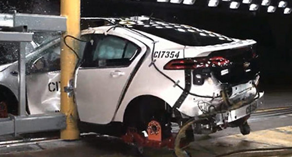 Az Egyesült Államokban az NHTSA hivatal végzi a törésteszteket, nemrég a Chevrolet Volt is sikerrel vette a próbát. Apró szépséghiba, hogy az ütközés után az udvaron leállított egyik autó kigyulladt, és több másik járművel együtt kiégett.