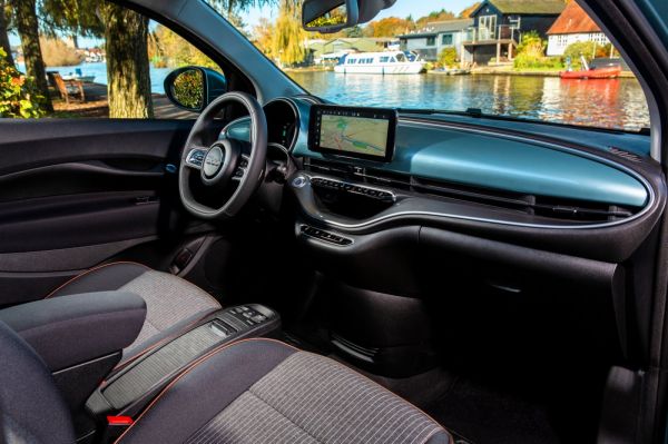 Az induló @ACTION szinttel kizárólag a ferdehátú karosszériaváltozat rendelhető (a kabrió és a 3+1 modellek csak @PASSION szinttől elérhetők); az alapverzió egy 95 lóerős (70 kW-os) villanymotorral van ellátva és így is kimondottan fürge, amit a 9,5 másodperces 0-100 km/h-s sprintidő és a 135 km/h-ra limitált végsebesség is bizonyít. A 23,8 kWh kapacitású akkucsomag a WLTP ciklus szerint több mint 180 kilométeres hatótávot tesz lehetővé, a maximum 50 kW-os töltési teljesítménynek köszönhetően pedig akár 50 kilométernyi hatótávot is tölthetünk a modellbe mindössze 10 perc leforgása alatt. Ugyan beszállószintről beszélünk, a bőséges segédrendszer-arzenál, a kulcs nélküli indítás és a hétcolos digitális műszercsoport is belefért az alapfelszereltségbe, amivel már önmagában többet kínál az Új 500, mint amit elődje valaha is adhatott. Ez igaz a fenntarthatóságra is: az ülések kárpitozása újrahasznosított fonálból szőtt szövetből készül, amely mellett fekete műszerfal és ezüst színű kontrasztvarrás kölcsönöz a belső térnek figyelemre méltó karaktert.