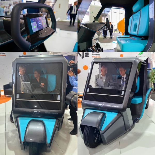 Épp csak elkészült a Neumann H2 prototípus, és máris Dubajba szállították azt, ahol a COP28 klímacsúcson állították azt ki. A Neumann János Egyetem Járműtechnológiai Kutatócsoportja fejlesztette a 3 kerekű szállítójármű hajtását, a megjelenést pedig a MOME Mobility Design Lab készítette.