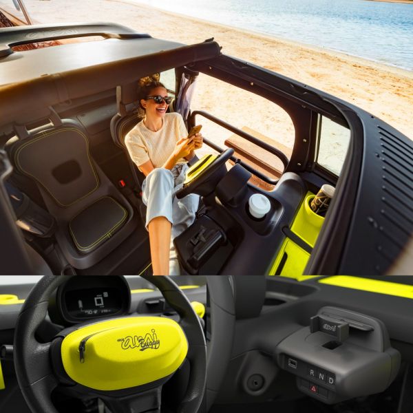 Van néhány változás a korábbihoz képest, nem egyszerűen csak csöveket szerelnek az ajtók helyére, de átlátszó műanyag ajtólapokat is adnak, amivel rossz időben is használható lesz az Ami – a rend kedvéért a normál változathoz hasonlóan nincs fűtés a fedélzeten –, a kormány közepére pedig egy zipzáros tárolót tesznek, és egy vízálló, 15 óra akkumulátoridővel rendelkező Bluetooth hangfalat is adnak. A 2023-as Citroën My Ami Buggy ára adóval együtt 10 490 euró.