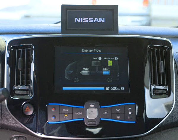 Egy e-NV200-as villanymotoros autó alapján valósították meg a működőképes autót, amelynél a 24 kWh kapacitású lítium-ion akkumulátort az e-Bio Fuel Cell fantázianevű, szilárd oxidos tüzelőanyagcella tölti. Ennek az üzemanyaga vízzel kevert bioetanol, amihez már nálunk is megvan a megfelelő infrastruktúra – az E85 nevű üzemanyag bioetanol benzinnel keverve. Az áramfejlesztés során keletkező szén-dioxid mennyiséget ellensúlyozza az a biomassza, amelyet az etanol megtermeléséhez használnak.