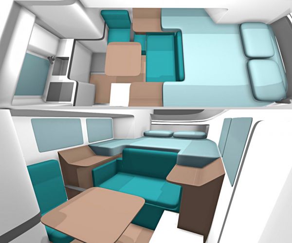 Két embernek biztosít hálóhelyet, konyhát és fürdőszobát az 1,8 méter széles, 3,95 méter hosszú doboz, amelyben alapesetben 1,95 méteres a belső magasság. Lehet alacsonyabb tetőt is kérni, amivel 2,75 méter alá megy a jármű magassága, amivel már megoldható, hogy konténerben lehessen szállítani az átalakított autót. A lakótér részére van egy 100 Ah kapacitású akkumulátor, 90 literes a frissvíztartály, a hűtőszekrény 29 literes.