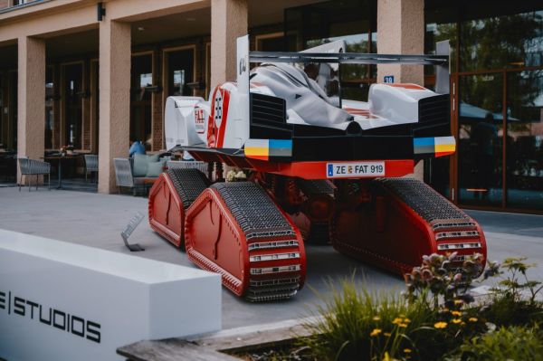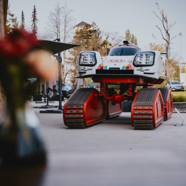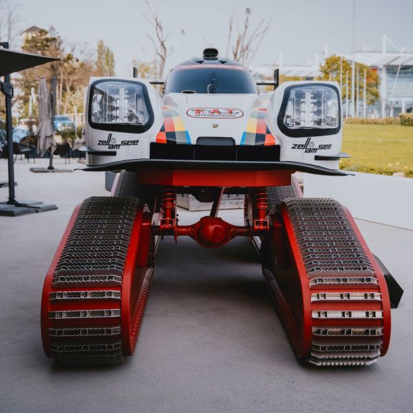 Mármint versenyautó-karosszériát, amelyet egyedi vázra építettek rá, amelynél merevtengelyekhez csatlakoznak a fém lánctalpak; a Porsche-traktorok vörös színét használták az új technikánál. A különleges alkotást egyébként még tavaly építették a F.A.T. Mantei rendezvényre.