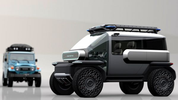 Változott a név, mert nem egyszerűen csak az elektromos korszakba léptek át a dizájnerek, de égitestet is váltottak, a Föld helyett a Hold az autó elképzelt otthona. A Toyota Baby Lunar Cruiser esetén az FJ40-es Land Cruisert próbáltak megidézni, és annak a szellemiségét ötvözni a Japán Űrügynökség számára a Toyota által fejlesztett holdjáró projekttel. Utóbbinak köszönhető a túlnyomórészt átlátszó üveg karosszéria, illetve számos kijelző is van, amelyek a külső kamerák segítségével növelik a látómezőt – ebbe beletartoznak a tetőcsomagtartó sarkában pihenő drónok, amelyek szintén képet közvetítenek az autónak.