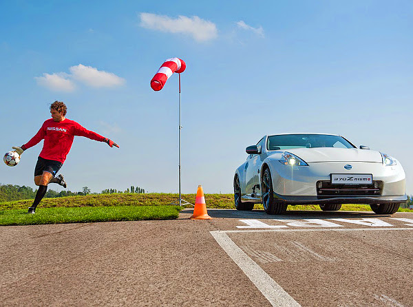 A Nissan felkérte a korábbi magyar válogatott kapus Hajdu Attilát, hogy mutasson be egy óriási, a legnevesebb európai kupasorozat mérkőzésein is gyakran látott kapuskirúgást, az egykori labdarúgó pedig elfogadta a felkérést. A Nissan persze a termékelhelyezésre is gondolt, és ezzel párhuzamosan Rákóczi Feri műsorvezető egy 370Z Nismo volánja mögött próbálta meg lehajrázni a bőrt.