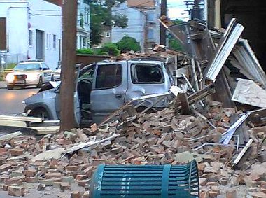 Egy Isuzu szabadidő-autó sofőrje hétfő reggel 6 óra körül Cincinatti városában csúnyán benézett egy kanyart, és egy, az 1800-as évek végén épült bérház sarkának ütközött. Noha egyenlőtlenek voltak a feltételek, meglepő eredmény született: az autó a kerekén távozott, az épületnek meg leomlott a sarka.