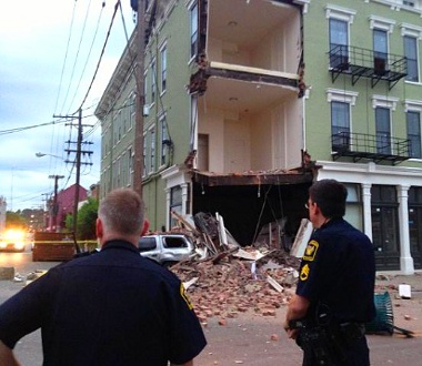 Persze jó alaposan összetört a General Motors által gyártott, és Isuzunak átmárkázott szabadidő-autó is, de sokkal súlyosabb kárra lehetne számítani annak láttán, hogy mi történt az épülettel. Utóbbinak mindhárom emelete leomlott a sarkon, jelenleg is a statikusok vizsgálják, hogy meg lehet-e menteni, vagy le kell bontani.