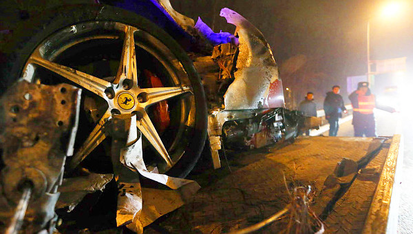 Még február 13-án történt a baleset, amely során hajnali fél négykor, a pekingi Beigao hídon veszítette el uralmát a 23 éves sofőr Ferrari 458 Italia típusú sportkocsija felett, és nagy sebességgel haladva a szalagkorlátnak ütközött. Az autó roncsai több tíz méteres körben szóródtak szét, a kétszemélyes kocsiban utazó mindhárom személy kirepült onnan.