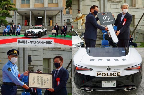 A Toyota ünnepélyes keretek között és nevetségesen túlméretezett slusszkulcs kíséretében adta át Tochigi prefektúra rendőrségének a legújabb rendőrautót, amelyet egy Lexus LC500-asból készítettek. A japán rendőrség fekete-fehér fényezését és a szükséges kiegészítő felszereléseket is megkapta az autó.