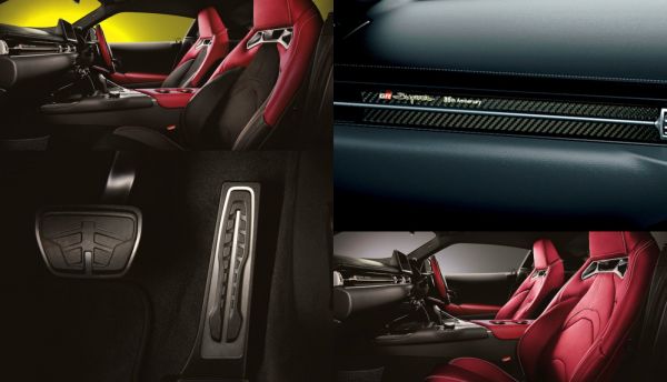 A 2,0 literes turbómotoros modellnél feketék a külső tükrök, pirosak a féknyergek, Alcantara-bőr kárpitot és sport pedálokat is használnak, bármelyik karosszériaszín választható – köztük a sajtófotókon látható villámsárga. A 3,0 literes turbómotorral szerelt Toyota Supra 35th Anniversary Edition csak itt elérhető mattszürke fényezést kap, vörös bőrbelsővel és indukciós telefontöltő is van. Közös az összes születésnapi Suprában a 19 colos, feketére fényezett kovácsolt alufelni, a karbon jelvények és az anyósülés előtt elhelyezett felirat.