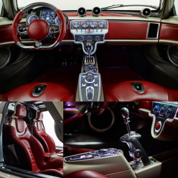 A belső tér a korábbi típusokhoz képest visszafogott és leginkább bővelkedik a fizikai kapcsolókban – nincs is középső érintőképernyő, a műszeregységben van egy digitális kijelző, amelynek a használatát az ülések között elhelyezett központi kezelőszerv teszi lehetővé. Saját színpadot kapott az igazi újdonság, a 7 fokozatú kézi kapcsolású váltó karját a síkból kiemelkedő konzolon helyezték el, igaz, erről felár ellenében le lehet mondani, hiszen automatizált kapcsolás is elérhető – az Xtrac által készített váltó egy kuplungos, ez is hozzájárul ahhoz, hogy a duplakuplungos váltót használó előd Huayrához képest 70 kg-mal csökkent a saját tömeg.
