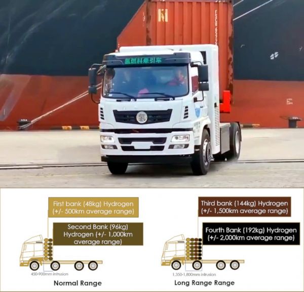 Amíg a Tesla vagy a Nikola Motors teljesen saját fejlesztésű tüzelőanyagcellás áramforrású elektromos kamionokat fejleszt, a Hyzon Motors nevű cég más irányból közelíti meg a kérdést. Egy, a tüzelőanyagcellák terén 17 éves múlttal rendelkező szingapúri cég technológiáját veszik alapul, kínai járművekbe építve már több mint száz működő prototípussal több millió km-es tapasztalattal rendelkeznek az üzemeltetés kapcsán. Ezt a tüzelőanyagcellás-elektromos hajtást építik majd a saját fülkével rendelkező kamionjukba.