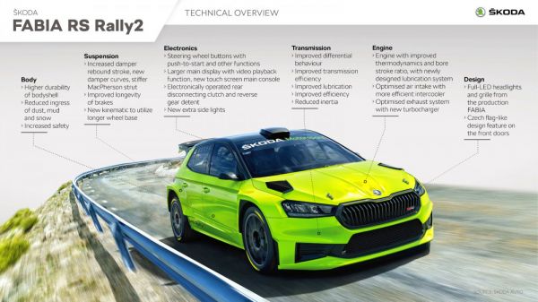 A Škoda Motorsport 2 darab prototípussal végezte az új Fabia RS Rally2-es versenyautó végső finomhangolását, ezek közül az aszfaltfutóművel szerelt példányt állították most ki a Cseh Műszaki Múzeumban – még az álcázást se távolították el a karosszériáról. Kellően rugalmas nyakkal megáldott látogatók alaposan megnézhetik majd, hogyan kanyarították a masszív bukókeret összesen 36 méternyi csövét, az 1620 cm3-es, 289 lóerős turbómotort már nem csodálhatják meg, hiszen a motorháztető alapesetben zárva marad. A prototípust a Múzeumnak adományozta a gyár, azt a Közlekedési csarnokban lehet majd megtekinteni, ahol egy 1905-ös Laurin & Klement (Slavia) CCR verseny-motorkerékpár és egy 1913-as Laurin & Klement RK/M versenyautó is látható, jelezve, hogy a Škoda márkának (és jogelődeinek) már több mint 120 éves verseny-múltja van.