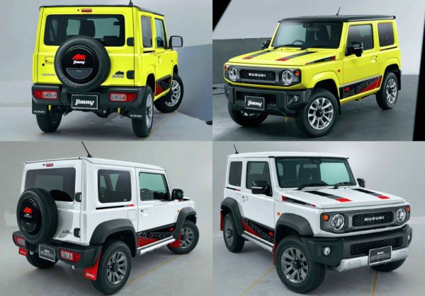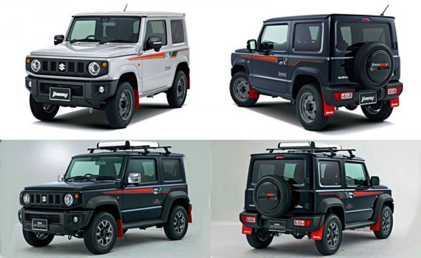 A Revival Style neonszínes hullámos motívuma a nyolcvanas éveket idézi meg, az Offroad Style fekete/szürke/piros levonókat tartalmas, amelyekből jut a motorháztetőre is. A Heritage Style vékony színes csíkokat jelent a karosszéria oldalán, a Survival Style pedig fekete mintás oldalfalat eredményez. Egyelőre csak Japánban kínálják a matricákat a Jimnyhez.