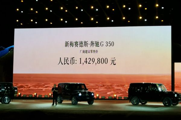 A legfontosabb újdonsága a kis motorral szerelt G-osztálynak, hogy az ára egy kicsit alacsonyabb lett, mivel ezt is Ausztriából exportálják a Távol-Keletre, luxusautó-adót kell rá fizetni, így abszolút értékben nem lett olcsó a G 350, az 1 492 800 jüanos ár 63,8 millió Ft-os (!) belépőt jelent – a G 500 indulóára 1 628 800 jüan, azaz 72,6 millió Ft. A négyhengeres modellhez is elérhetőek a G manufaktur szolgáltatásai, azaz egyedi kialakítással is kérhető.