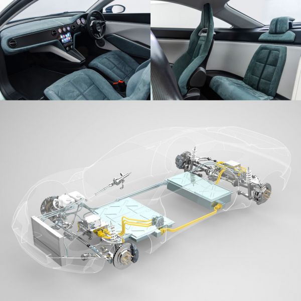 Karbonból és alumíniumból készülő vázra épül a műanyag karosszériás kupé, amelynek hossza 4255 mm, szélessége 1893 mm, magassága 1226 mm. Az 55 kWh kapacitású akkumulátorról annyit mondanak, hogy nagyon fejlett a hőmenedzsmentje, ami nem csak a sportos autózás alapfeltétele, de 150 kW-os villámtöltéssel 15 perc alatt érhető el a 80%-os töltöttségi szint. Körben kettős keresztlengőkaros felfüggesztést és tárcsafékeket használnak.
