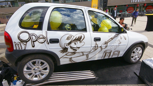 Megjelenésekor a gömbölyű B Corsa egyedi megjelenésű volt, olyannyira, hogy több piacon egyszerűen leálltak a reklámkampánnyal; anélkül is nagyobb volt a kereslet, mint a gyártókapacitás. A karakteres forma miatt döntöttek tehát a kisautó mellett, igazából két fontos szempont volt: legyen szentgotthárdi motorja (1,4 literes, 16 szelepes benzines 90 lóerővel) és fehér színe. Utóbbi azért fontos, mert vászonnak használják a karosszériát. Mintegy három hónap telt el a Corsa megvásárlása óta, amelyet aztán Opel gyári alkatrészek segítségével hoztak tökéletes műszaki állapotúra. A szokásos karbantartáson felül (folyadékok és kopóalkatrészek) a kipufogórendszer cseréje, egy komolyabb fékjavítás történt, működőképessé tették a légkondicionálót, no meg eltüntették még a legapróbb karosszériahibát is. És mivel a végeredményen sokat dob majd, a gyári tartozékok között megtalálható könnyűfémfelniket is kapott az autó.