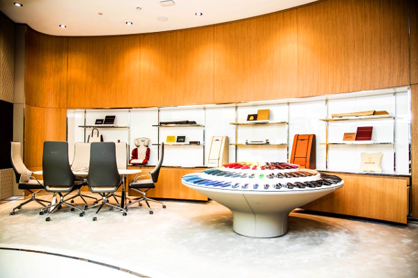 Hat emeleten helyezkedik el az exkluzív bemutatótér, lent parkolók, a tetőn kert található, az ezeket összekötő lift gumiszobának is beillő kialakítást kapott. Valójában csak arról van szó, hogy itt is a gyár elvárásainak megfelelő minőségű és kidolgozású bőrt használták, ahogy az épület többi részén is. Az ember csak természetes anyagokkal – márvány, fém, fa, bőr – kerül kapcsolatba, no meg a Bentley autóival: Continental, Flying Spur, Mulsanne és Bentayga. Ezen kívül Mulliner szoba van, ahol az egyedi igényeket lehet megbeszélni.