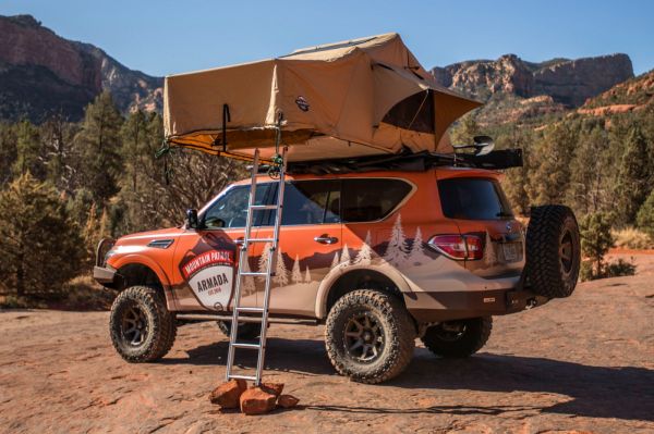 Arra az esetre, ha a természetben autózónak megtetszik egy adott helyszín, nyugodtan ott éjszakázhat, hiszen a tetőn egy négyszemélyes autósátrat helyeztek el. A Nissan Armada Mountain Patrol az Overland Expo WEST kiállításon debütál, és ezt követően is hasonló rendezvényeken haknizik majd az idei év folyamán.