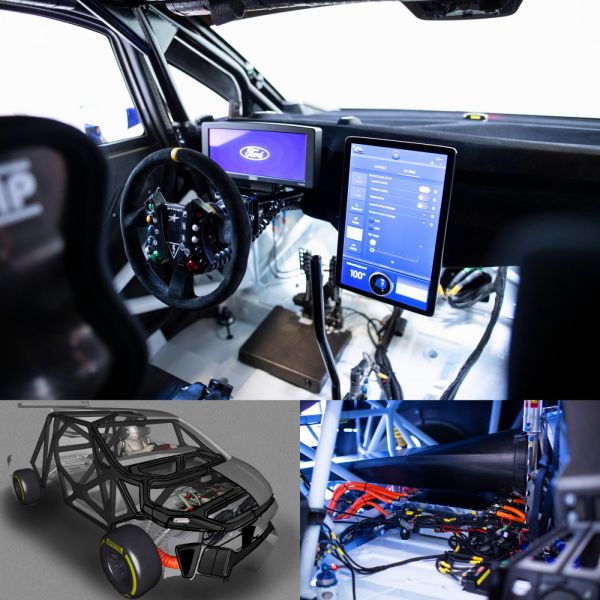A kiindulási alapot egyedi versenyautó-csőváz adja, amelyre aztán olyan külső hájat húztak rá, amely nagy vonalakban a május elején fényképen megmutatott új E-Transit Customra hasonlít. Négy hajtómotor van, a rendszerteljesítmény 2000 lóerő, az energiaellátásról egy 50 kWh kapacitású, folyadékhűtésű akkumulátor gondoskodik – a töltési idő 45 perc. A belső térben megjelenik még a legújabb SYNC fejegység az óriási érintőképernyővel, ennek segítségével tudja kezelni a sofőr a menüt, ahol megtalálható a hivatalosan az abroncsok bemelegítésére szolgáló üzemmód is: az egyik tengelyen aktiválódnak a fékek, a másik tengelyen szabadon pöröghetnek az abroncsok. Szóval lehet választani, hogy elöl vagy hátul füstöljenek a gumik!