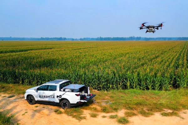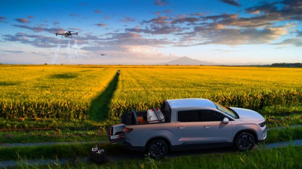 A legnagyobb újdonság azonban a mezőgazdasági drón, amelynek szállítására-landolására egy masszív alumínium fedélzetet szerelnek a plató fölé, a raktérben kapnak helyet a kemikáliák szállítására szolgáló tartályok, a drón töltését a megfelelő adapterrel a töltő-csatlakozón keresztül lehet végezni. A Radar RD6-os alkalmazásán keresztül lehet vezérelni a mezőgazdasági drónt. A Geely által készített drón egyébként feláras, alapesetben csak a landolóplatformot adják, így akinek már van mezőgazdasági drónja, annak nem kell egy újabbra beruháznia. A 2 hajtómotoros összkerékhajtás rendszerteljesítménye 272 LE, nyomatéka 384 Nm, a 63 kWh kapacitású lítium-vas-foszfát akkumulátor a kínai szabvány szerint 410 km-es hatótávolságot biztosít. A fedélzeti töltő 7 kW-os, 120 kW teljesítményű villámtöltés fogadására alkalmas az akkumulátor.