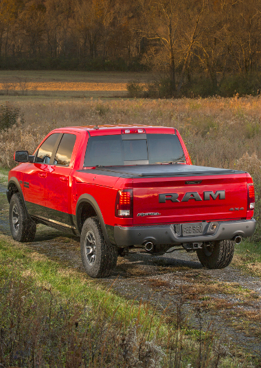 Szóval a különféle motorizált eszközzel hétvégente sportoló embereknek szánják a Ram Rebel-t, amelyről azért rögtön kijelentik, hogy ez nem egy tereprali-versenyautó. Épp csak megjelenést próbálták fickósabbá tenni a rengeteg fényezetlen fekete műanyaggal és a krómot teljesen nélkülöző hűtőráccsal. A motorháztetőn látható szellőzők nem valódiak. A hasmagasság is maradt változatlan, a légrugózás segítségével igény szerint 2,5 centivel lehet növelni a talajtól való távolságot, egyébként a hatótávolságot a 285/70 R17-es Toyo terepabroncsok kapaszkodóképessége jelenti.