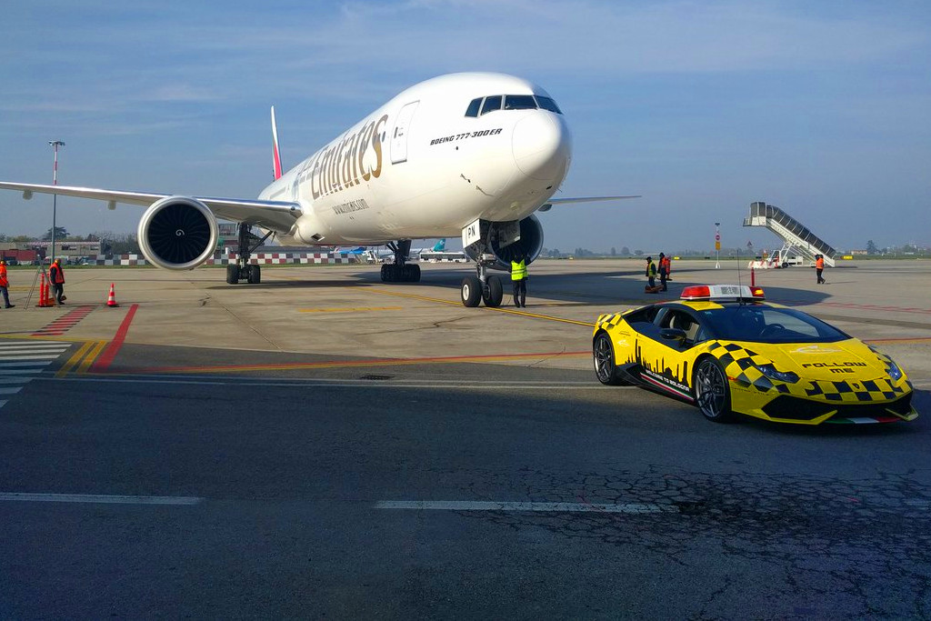 A 25 km távolságban lévő Lamborghini gyár először 2013-ban, a repülőtér 50. évfordulóján kölcsönzött egy Aventadort hasonló célra, és várhatóan a jövőre bemutatkozó Urus nevű szabadidő-autó is előbb-utóbb megkapja a Follow Me változatot.