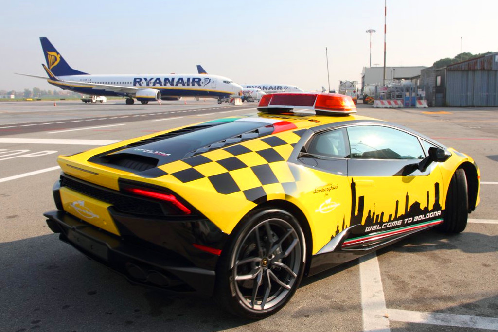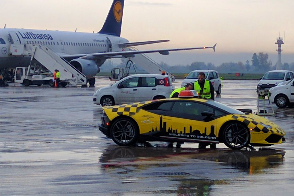 Január végéig gyarapítja a bolognai Marconi repülőtér flottáját a Huracán felvezetőautó, amelyet a feladat miatt sárga fényhíddal és egyedi dekorációval láttak el – a megjelenést a Lamborghini Centro Stile formatervezői véglegesítették. A megszokott négyzetrácsos minta mellett a város jellegzetes épületeit mutató ábrával láttak el az ajtókat.