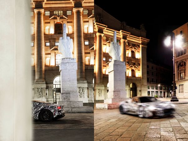 Noha Észak-Olaszországban gyakorlatilag megállt az élet, a Maserati márka fejlesztői nem pihennek, az MC20 néven készülő új sportkocsijuk tesztelését folytatják. A következő hetekben ikonikus olasz helyszíneken fotózzák le a középmotoros sportkocsi teljesen álcázott prototípusát, a sort a milánói Piazza degli Affari nyitja, ahol Maurizio Cattelan kortárs szobrászművész L.O.V.E. elnevezésű alkotása előtt látható – egészen pontosan nem látható, hiszen digitálisan bemozgatták az autót – az újdonság.