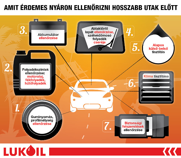 A nyári szabadságok és a kánikulai hétvégék idején sok autós indul a szokottnál hosszabb utakra, ezt megelőzően azonban sokan nem fordítanak kellő figyelmet a jármű felkészítésére, illetve állapotának felmérésére a LUKOIL kútvezetőinek tapasztalatai szerint. A még garanciális autók esetében például érdemes ellenőrizni, hogy a következő szervizeléshez megállapított futott kilométerek számát várhatóan túllépik-e az út során, ugyanis ebben az esetben ajánlott korábban átnézetni az autót, hogy az esetleges hibákra még időben fény derüljön.