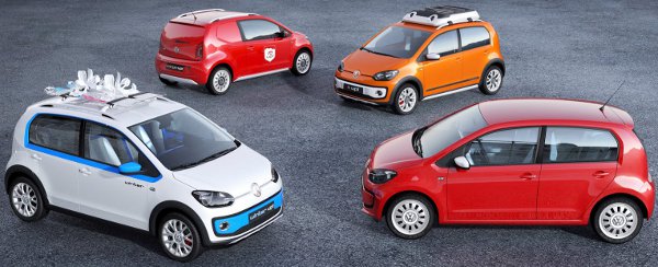 A Swiss Up! a szalon házigazdáinak való kedveskedés, a piros karosszériát fehér kiegészítőkkel – külső tükrök, felnik – dobják fel, az utastérben a fehér kárpitokon piros csík húzódik végig. A Winter Up! kék-fehér színösszeállítással és a tetőre szerelt síléc/hódeszkatartóval rendelkezik. Az autó a Frankfurti Cross Up! Módosításával született meg, ahogy a X Up! is, amely a VW jellegzetes narancs fényezését és a tetőre szerelt fényszórókat is kapott. A Cargo Up! klasszikus haszonjármű-átépítés, lemezelt hátsó oldalablakokkal és elválasztó-hálóval.